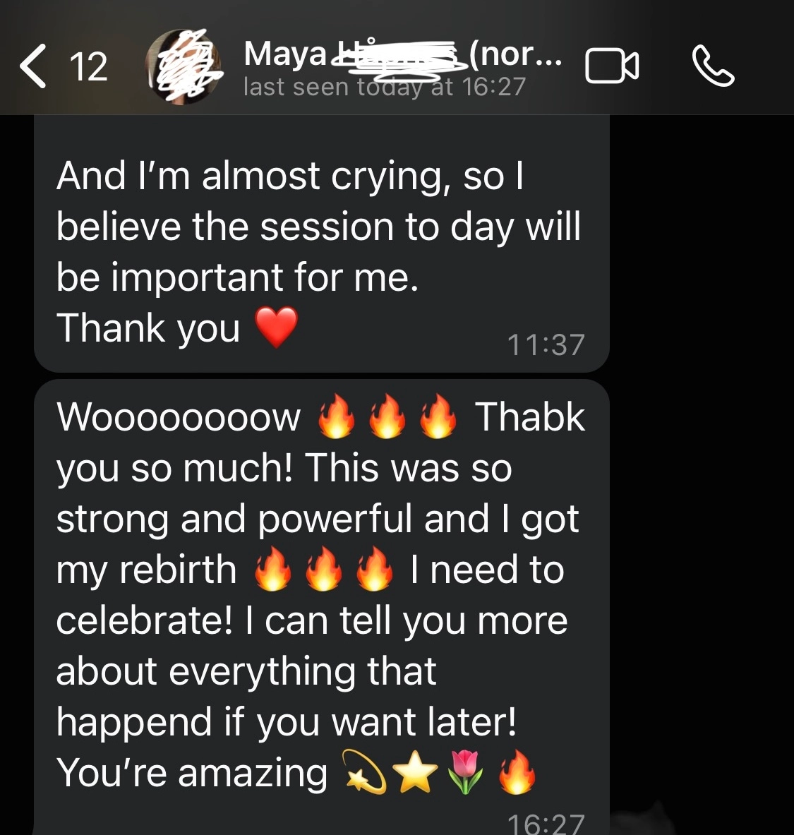 A: Yes. After your session, you’ll receive personalized recommendations for integration (as a form of a voice note or at the end of the call). You’re also welcome to message us if anything arises later — we’re here to support your process.